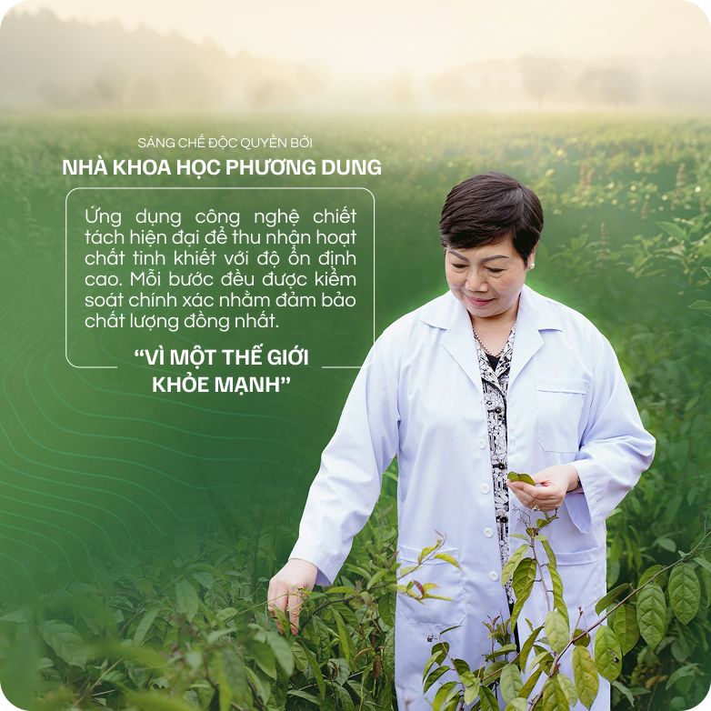 Ứng dụng công nghệ chiết tách hiện đại để thu nhận hoạt chất tinh khiết với độ ổn định cao. Mỗi bước đều được kiểm soát chính xác nhằm đảm bảo chất lượng đồng nhất.