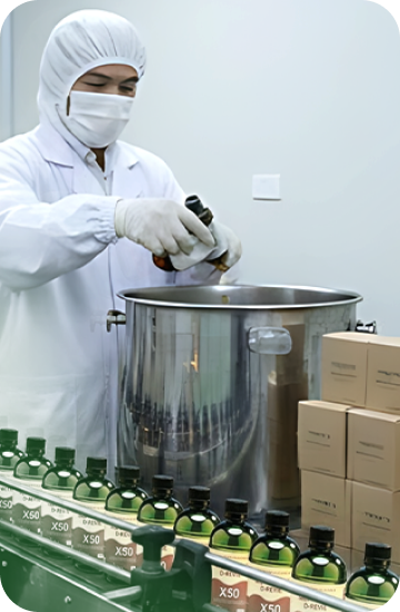 Nguyên liệu tinh chiết được phối trộn theo công thức tối ưu trong môi trường đạt chuẩn an toàn.